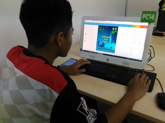 Mereka hanya perlu mengubah beberapa animasi yang terdapat pada templet yang disediakan dengan menambah animasi atau gambar seperti pelita, ketupat dan juga lemang. Di dalam kelas ini, kita juga dapat melihat tahap kreativiti setiap individu dalam menghasilkan kad hari raya yang kreatif. Untuk menyimpan kad hari raya tersebut, mereka hanya perlu mendaftar masuk menggunakan akaun google atau akaun facebook mereka. Kemudian, kad raya tersebut boleh di simpan dengan memuat turun atau boleh di kongsi melalui akaun facebook masing-masing.