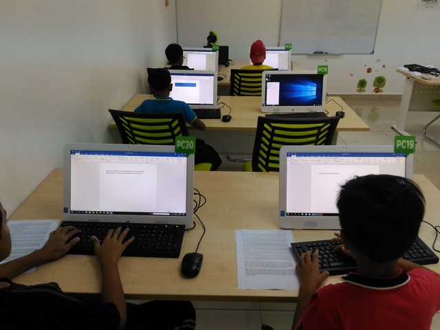 Di dalam kelas ini, mereka telah diberikan penerangan berkaitan kegunaan Microsoft Office Word dalam menaip teks karangan yang lebih mudah dan kemas. Selepas daripada penerangan berkaitan dengan Microsoft Office Word, mereka telah diberikan teks karangan untuk di taip semula dengan mengikut format yang telah diberikan. Mereka mengambil masa hampir 1 jam untuk menyiapkan teks karangan tersebut. Di akhir kelas Microsoft Office Word ini, mereka dapat memahami tentang cara untuk memasukan simbol-simbol yang betul berdasarkan teks yang telah di berikan.