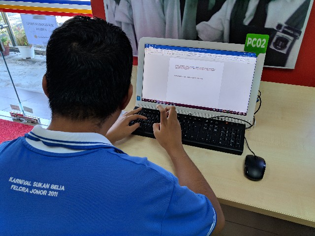 19 Mac 2019 | Aktiviti TerkiniPada Isnin, 18 Mac 2019, telah diadakan satu Program Khas Bersama OKU yang telah diadakan di Pusat Ekonomi Digital Felcra Sungai Ara. Program Khas Bersama OKU ini telah di hadiri oleh seorang OKU sahaja. Tujuan Program Khas Bersama OKU ini diadakan adalah untuk memberikan pendedahan dan kefahaman kepada golongan Orang Kelainan Upaya (OKU) berkaitan dengan ICT dan juga Internet di dalam komuniti Perkampungan Felcra Sungai Ara. Pada program kali ini, beliau telah diberikan penerangan, panduan dan latihan berkaitan dengan Microsoft Office Word.
