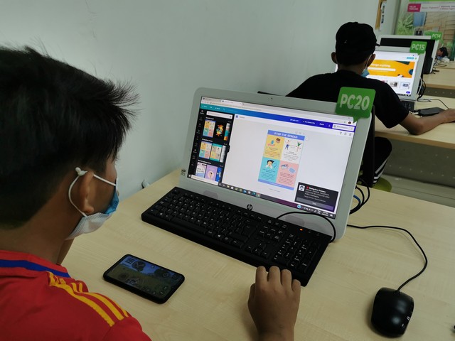 Selain itu, Mereka juga boleh menukar jenis font dan warna font di bahagian yang telah disediakan. Di akhir kelas ini, mereka telah berjaya menghasilkan poster dengan mengikut tema yang ditetapkan. Mereka boleh memuat turun poster yang telah siap dengan klik bahagian muat turun yang disediakan di laman ini.