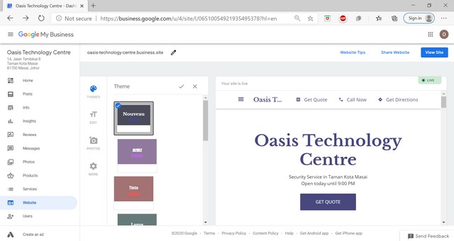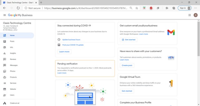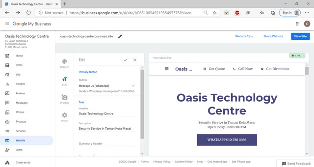 2 November 2020 | Aktiviti TerkiniPada ahad, 1 November 2020 telah diadakan satu kelas di dalam talian Google My Business. Tujuan kelas ini diadakan adalah untuk membantu usahawan setempat mempromosikan perniagaan atau produk mereka di platform Google My Business. Platform Google My Business ini mengandungi laman web, iklan produk dan juga gambar perniagaan atau produk yang ditawarkan oleh usahawan tersebut. Melalui Google My Business ini juga, pelanggan boleh menempah pesanan melalui aplikasi WhatsApp yang terdapat di dalam web perniagaan. Platform Google My Business dapat membantu usahawan mempromosikan produk dan perniagaan mereka secara percuma di Google.