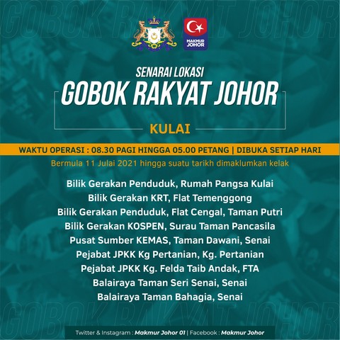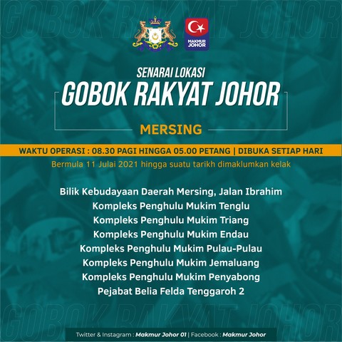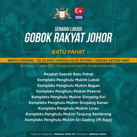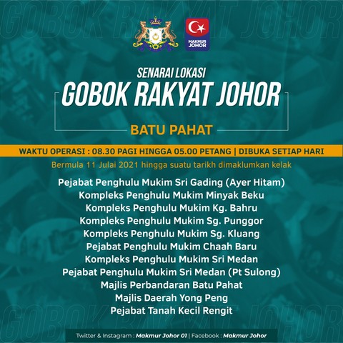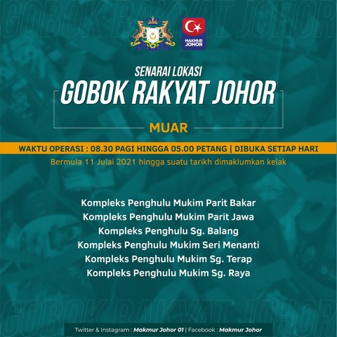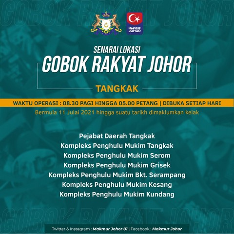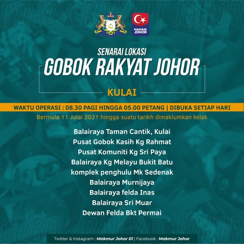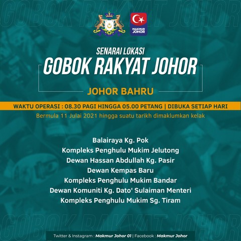 Mereka yang terkesan boleh mengambil makanan atau barangan keperluan yang disediakan di pusat-pusat Gobok Rakyat Johor mengikut daerah masing-masing.