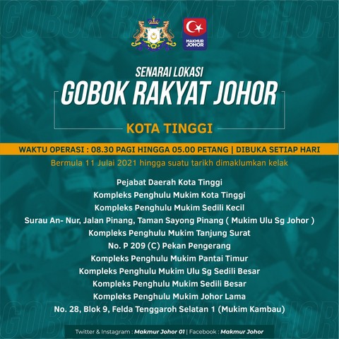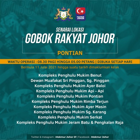 Gobok Rakyat Johor dibuka pada golongan berkenaan pada 11 Julai 2021 (Ahad) hingga suatu tarikh yang akan diumumkan kelak. Waktu operasi bermula dari 8.30 pagi - 5.00 petang dan dibuka pada setiap hari.
