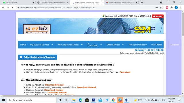 Pada khamis, 10 jun 2021, telah diadakan satu kelas dalam talian berkaitan dengan pendaftaran Suruhanjaya Syarikat Malaysia (SSM). Beliau di minta untuk mendaftar masuk ke laman SSM untuk membuat permohonan dengan mengisi butiran diri yang telah disediakan. Setelah selesai membuat pendaftaran, beliau di minta untuk membuat pengesahan diri dengan memuat naik Salinan kad pengenalan, gambar selfie bersama kad pengenalan dan juga Salinan lessen memandu. Kesemua dokumen ini perlulah di muat naik dalam bentuk pdf. Setelah selesai pengesahan, beliau boleh membuat lessen SSM secara percuma dengan menggunakan bantuan kerajaan untuk B40 dan juga pelajar.