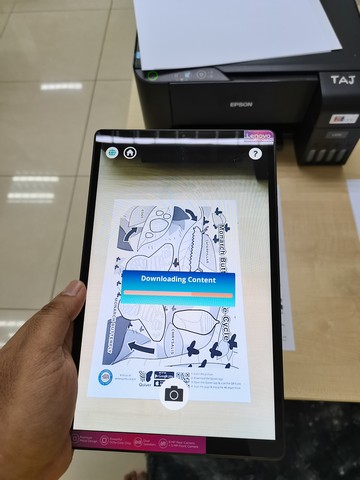 Augmented Reality adalah teknologi yang memperoleh penggabungan masa nyata kandungan digital yang dicipta oleh komputer dengan dunia sebenar. Augmented Reality membolehkan pengguna melihat objek maya 2D atau 3D yang diunjurkan terhadap dunia sebenar. Didalam kelas kali ini, mereka didedahkan dengan pengunaan AR dengan menggunakan aplikasi Quiver. Dengan mengimbas gambar dengan menggunakan tablet, mereka akan dapat melihat kandungan 3D pada tablet tersebut.