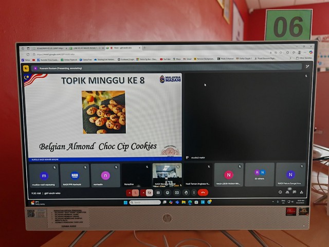 16 Februari 2025 | Aktiviti TerkiniPada Sabtu, 15 Februari 2025 telah diadakan Mahir Masak Minggu 8 yang telah di laksanakan secara dalam talian di Pusat Sebaran Maklumat Nasional (NADI) Felcra Sungai Ara. Mahir Masak Kelas 7 ini di laksanakan pada setiap hari sabtu pada jam 9.30 pagi hingga 10.30 pagi. Tujuan kelas pada kali ini adalah untuk memberikan penerangan dan panduan serta latihan dalam penghasilan Belgian Almond Choc Chips Cookies. Pada kelas kali ini, mereka telah membuat latihan amali di dalam penghasilan Belgian Almond Choc Chips Cookies bermula dengan pengenalan bahan-bahan yang akan digunakan. Setelah mengetahui bahan-bahan yang digunakan, mereka telah di berikan latihan berkaitan langkah-langkah di dalam penghasilan Belgian Almond Choc Chips Cookies bermula dari adunan tepung sehinggalah proses pembakaran biskut selesai. Di akhir kelas, peserta di minta untuk mengisi kedatangan di dalam MTS.